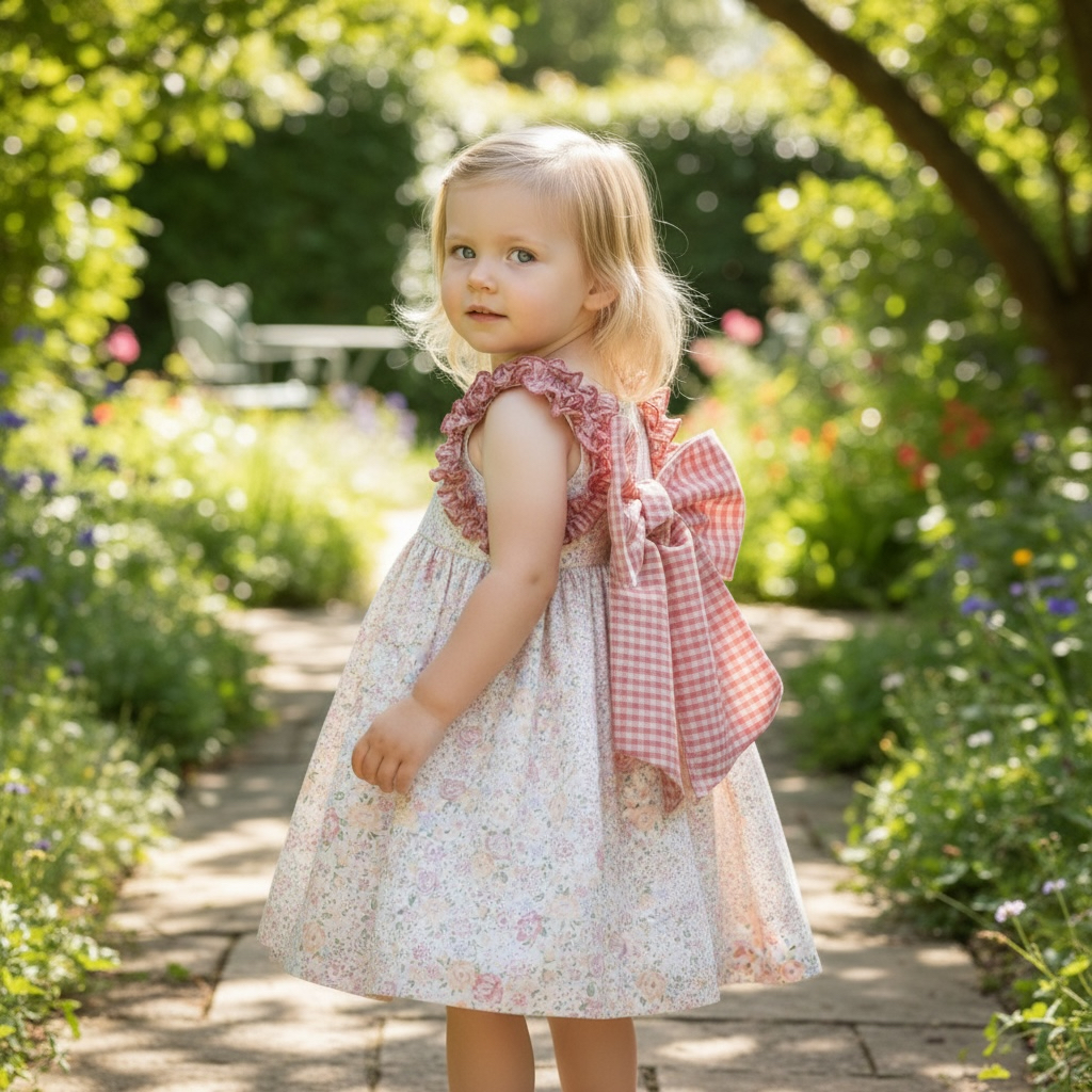 At the back, the crossed straps and large decorative gingham bow add a special and eye-catching touch.