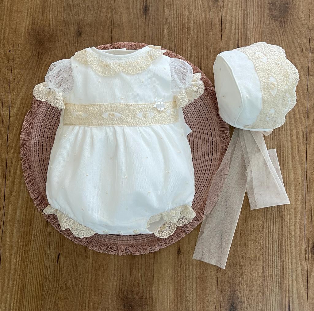 Tulle romper and bonnet Jazmin Collection. Limited edition