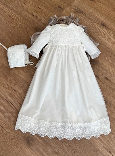 Faldón con capota unisex de Guipur colección DaliaPrimer Bebé